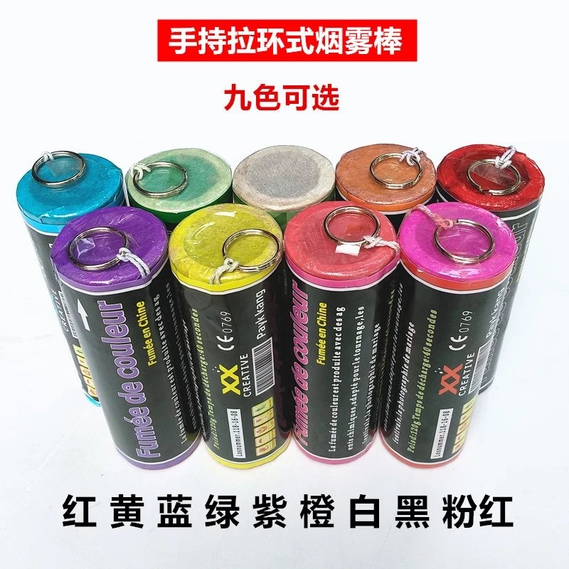 彩色烟雾棒摄影道具手持手拿彩烟m18消防演习烟雾烟饼红黄蓝绿紫色抖音网红